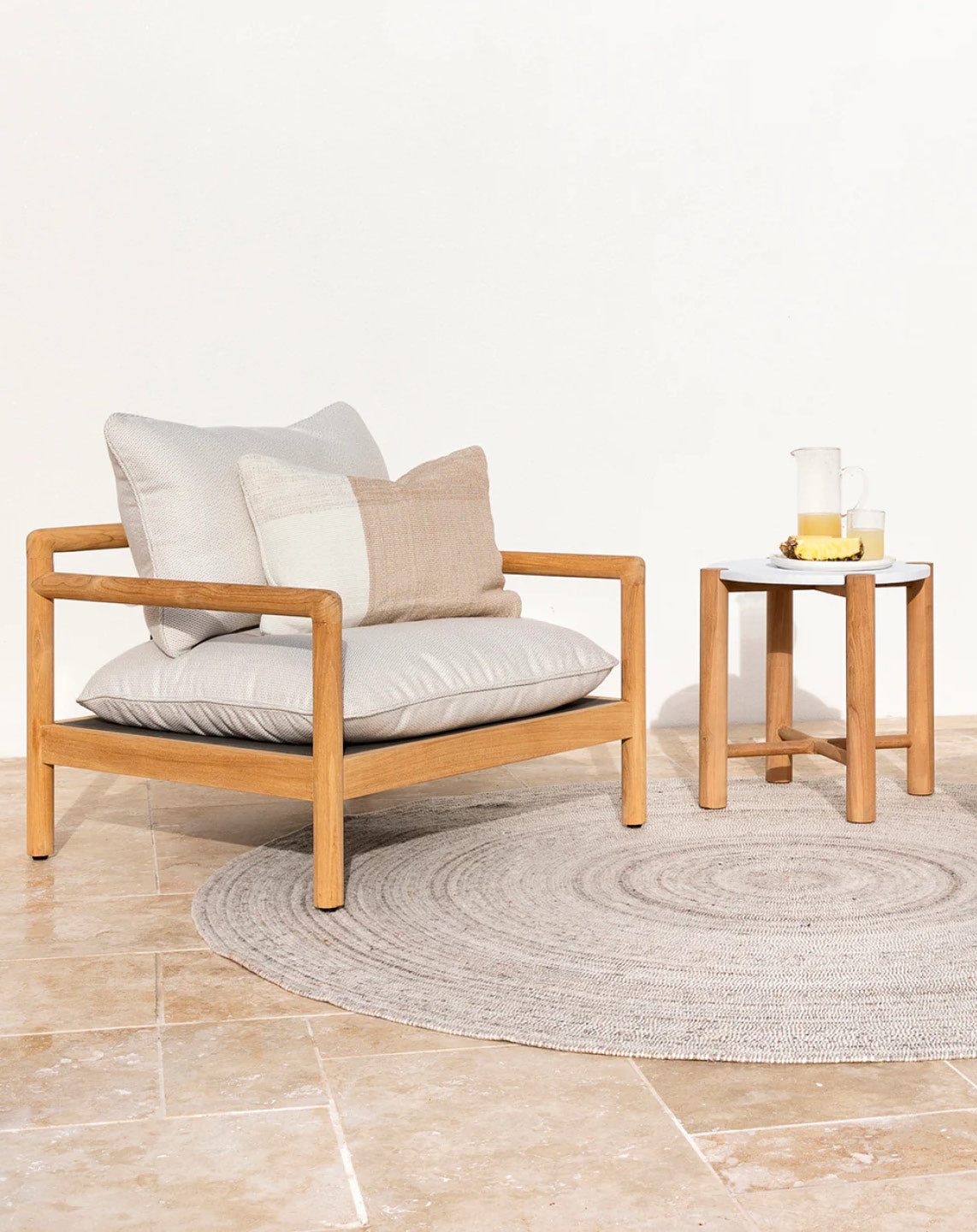 Embrace outdoor luxury with the understated design of our Finn cushion. Crafted from durable recycled PET yarn, sage and ivory tones are woven into an offset linear design with a textural finish. A versatile lumbar that is suitable for use both indoors and outdoors.