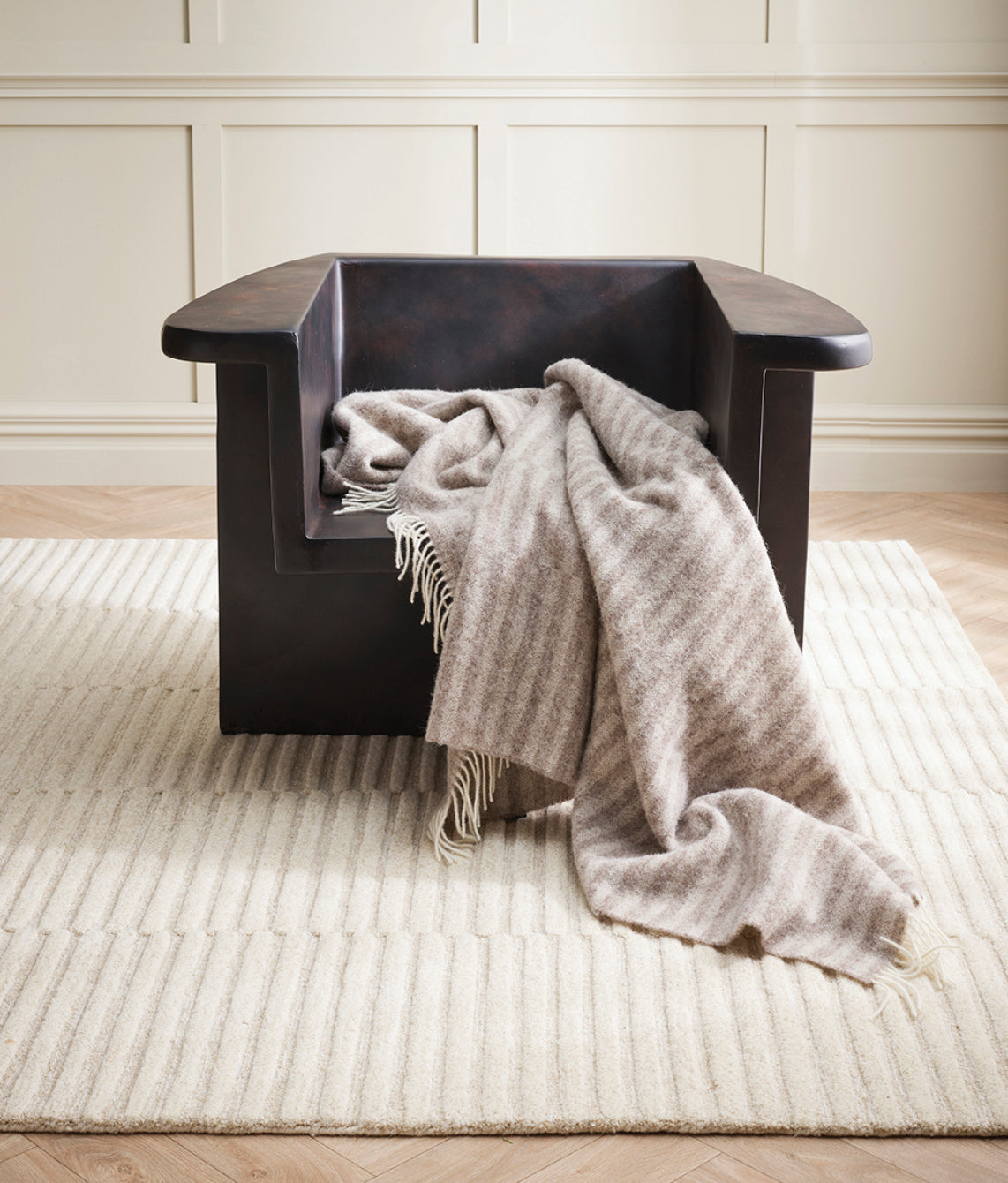 Featuring an offset linear design in warm oatmeal tones, the Noah throw adds a captivating sense of fun to contemporary spaces. Woven from soft New Zealand wool, the cosy throw is the perfect blend of comfort and style.