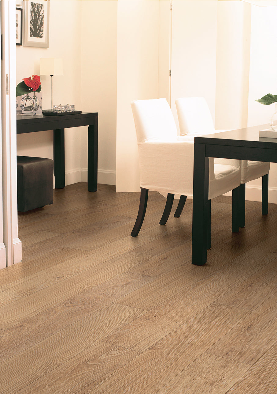 The Quick-Step Classic collection is made up of medium-sized planks, perfect for small or larger residences. The more affordable of the Quick-Step ranges, with advanced Hydroseal technology offering a completely waterproof surface, ideal for any room in your home and protection from the wear of daily life.