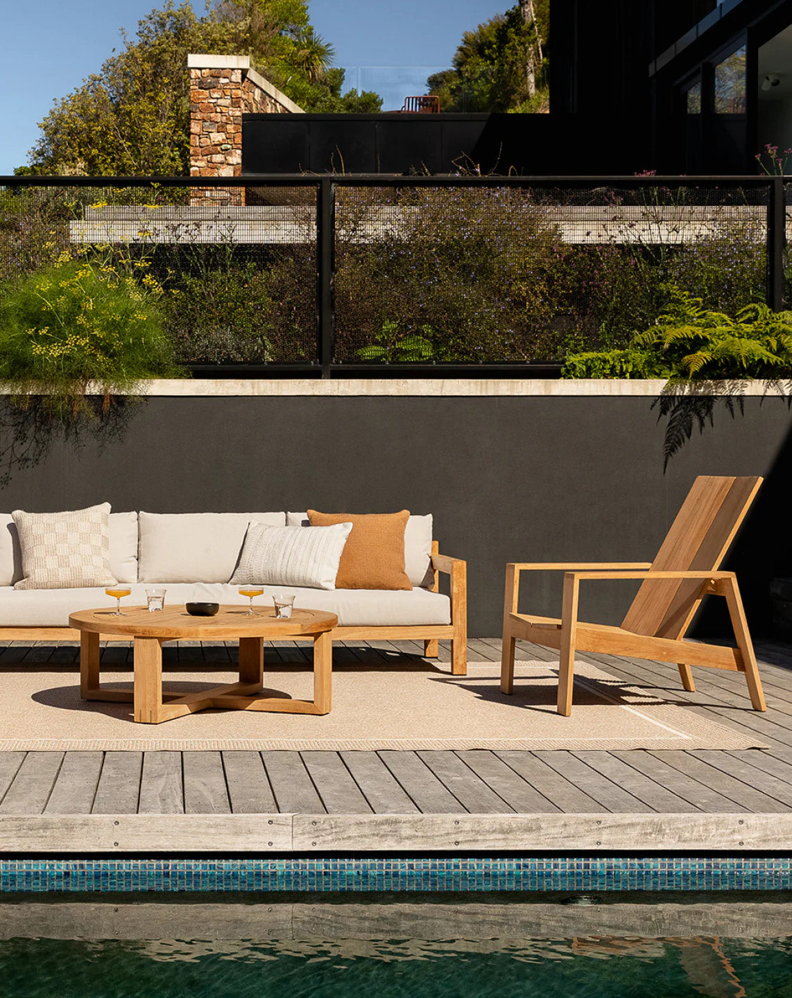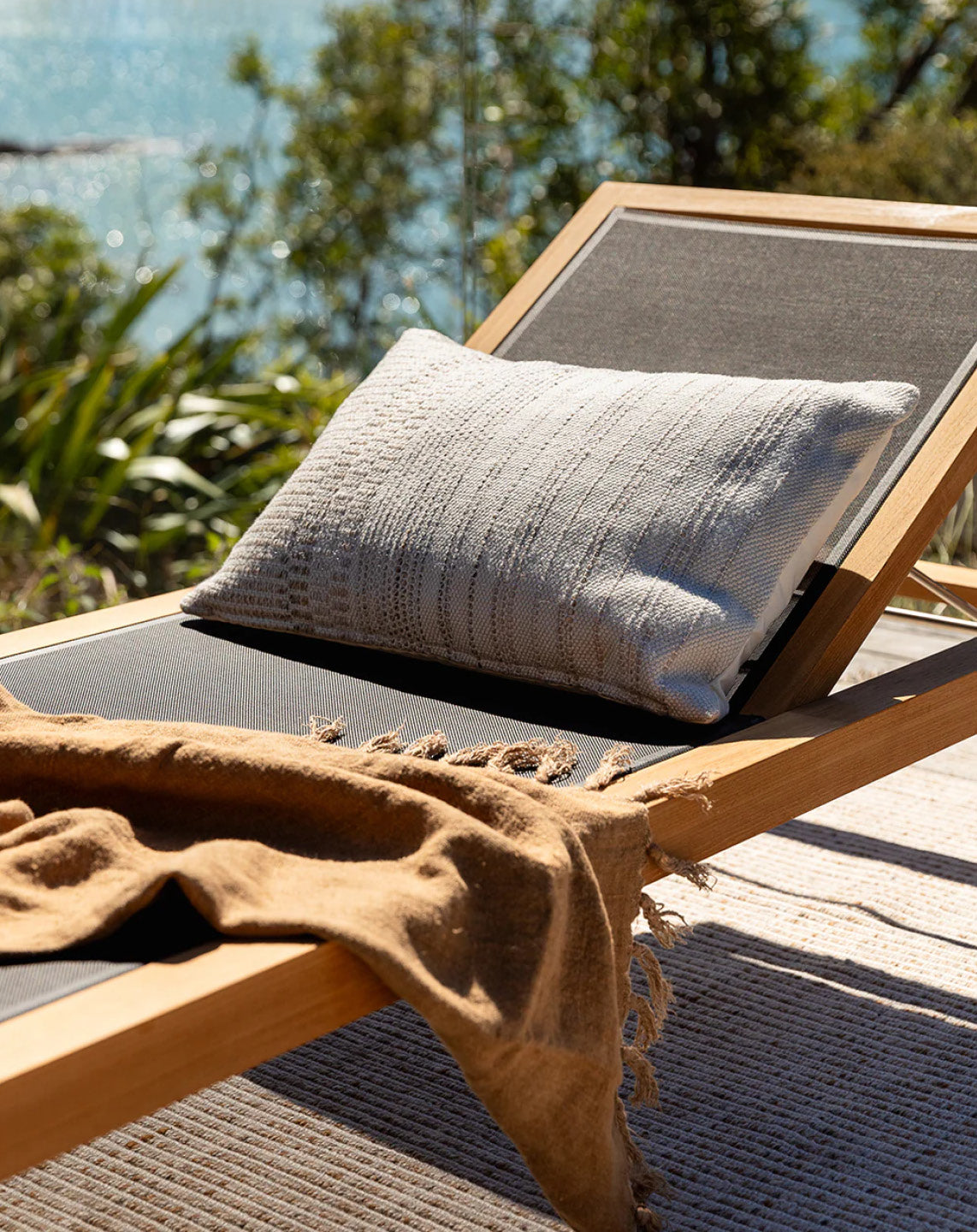 A natural, artisan aesthetic is reflected in the stunning design of this outdoor cushion. Handwoven from soft, recycled PET yarn, the Sonnet features a beautiful woven design in hues of ivory and teak. Both functional and beautiful, this durable lumbar works just as well styled indoors, especially in areas exposed to sunlight.